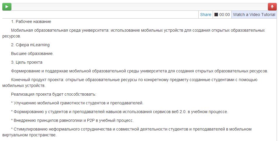 После этого нажав на нее снова - остановить запись. Для того, чтобы прослушать комментарий нажмите на зеленую кнопку слева вверху на ленте. Таким образом Вы можете оставить несколько комментариев. Для их сохранения нажмите кнопку "Share" рядом с таймером записи.